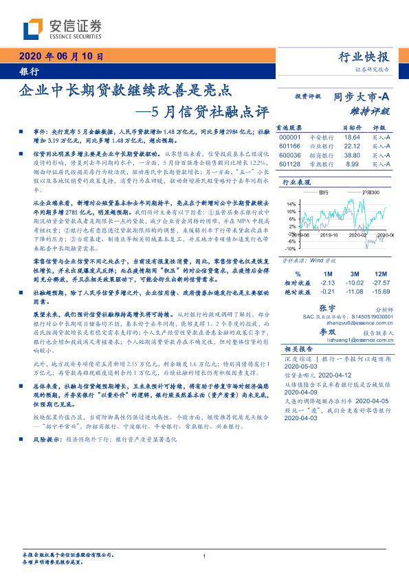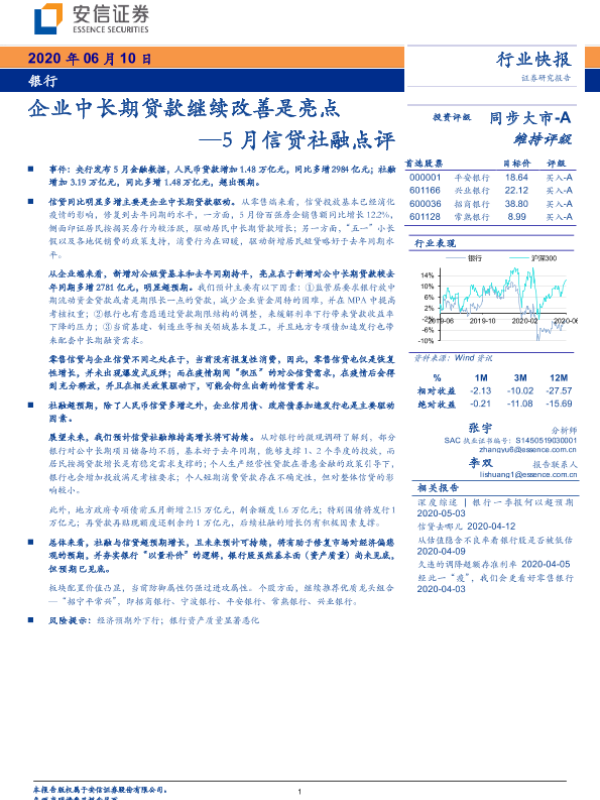 【安信证券】【20200610】5月信贷社融占评:企业中长期贷款继续改善是亮点-4页