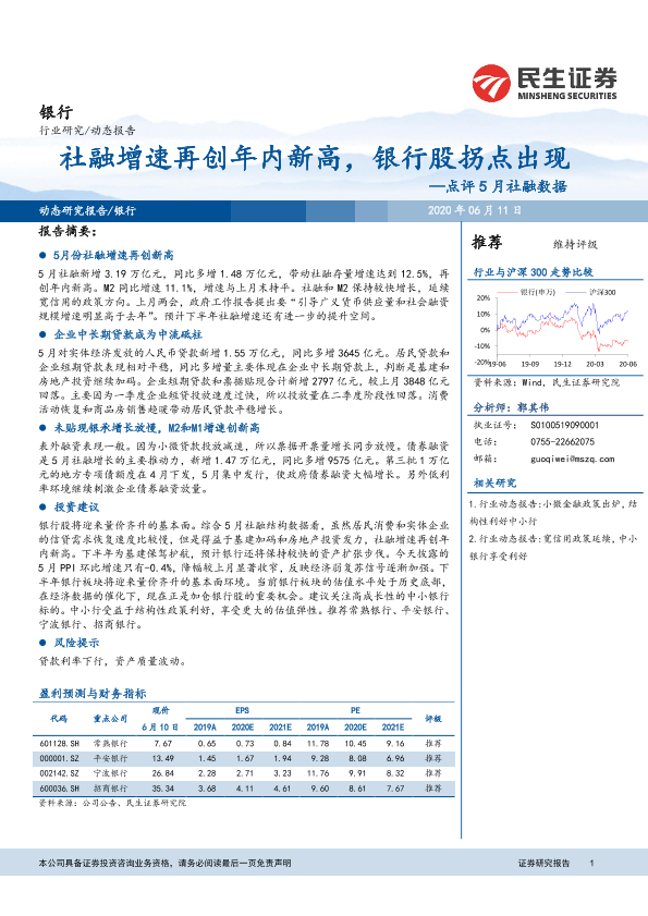 【民生证券】【20200611】银行点评5月社融数据:社融增速再创年内新高,银行股拐点出现-8页