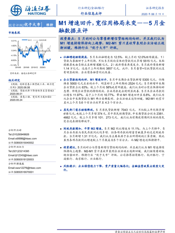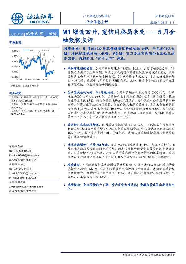 【海通证券】【20200611】银行5月金融数据点评:M1增速回升,宽信用格局未变-3页