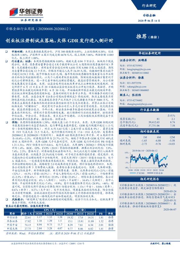 【华创证券】【20200614】非银金融行业周报:创业板注册制试点落地,太保GDR发行进入倒计时-16页