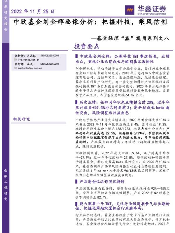 【华鑫证券】【20221125】基金经理“鑫”视角系列之八:中欧基金刘金辉画像分析,把握科技,乘风信创-20页