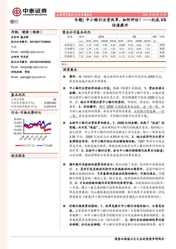 【中泰证券】【20200614】中小银行注资改革,如何评估?——托底VS估值提升-11页