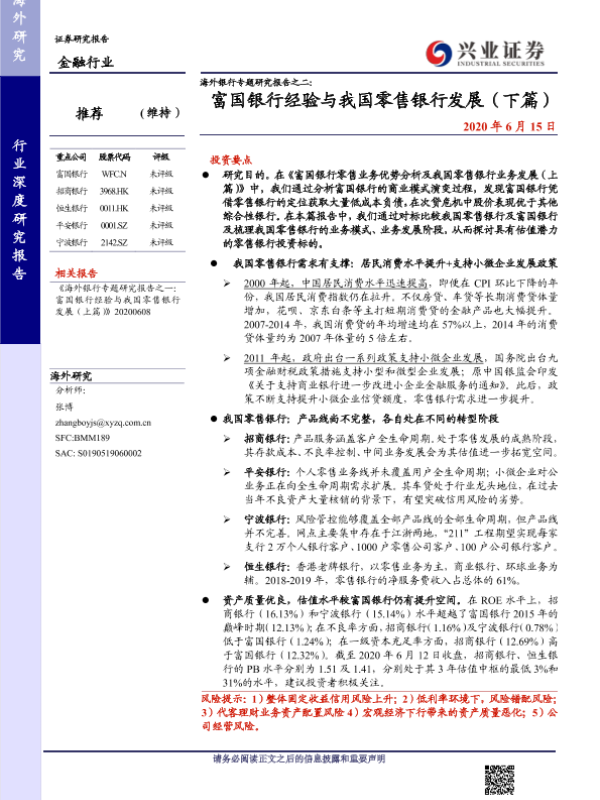 【兴业证券】【20200615】海外银行专题研究报告之二:富国银行经验与我国零售银行发展(下篇)-31页