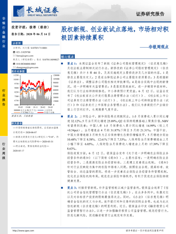 【长城证券】【20200614】非银周观点:股权新规、创业板试点落地,市场相对积极因素持续累积-40页