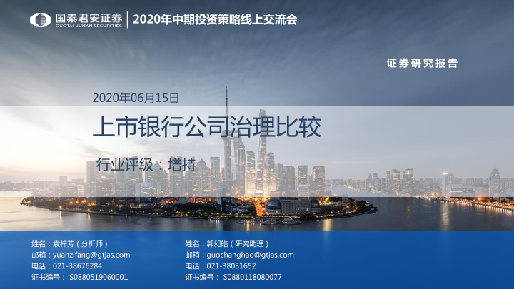 【国泰君安证券】【20200615】2020年中期投资策略线上交流会:上市银行公司治理比较-27页