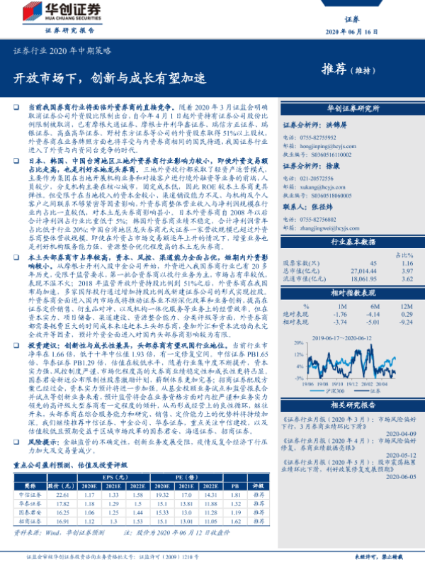 【华创证券】【20200616】证券行业2020年中期策略:开放市场下,创新与成长有望加速-25页