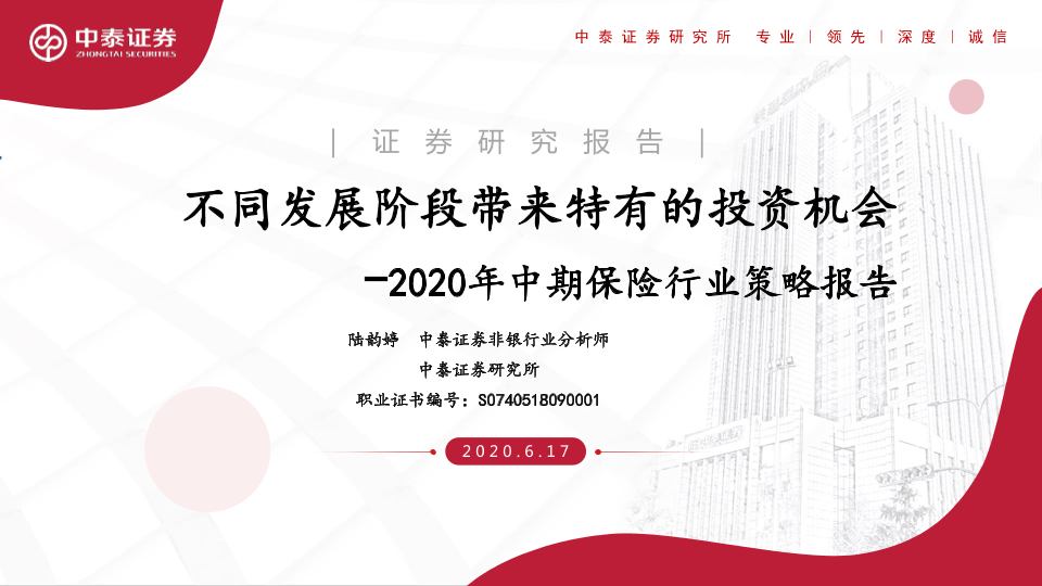 【中泰证券】【20200617】2020年中期保险行业策略报告:不同发展阶段带来特有的投资机会-15页