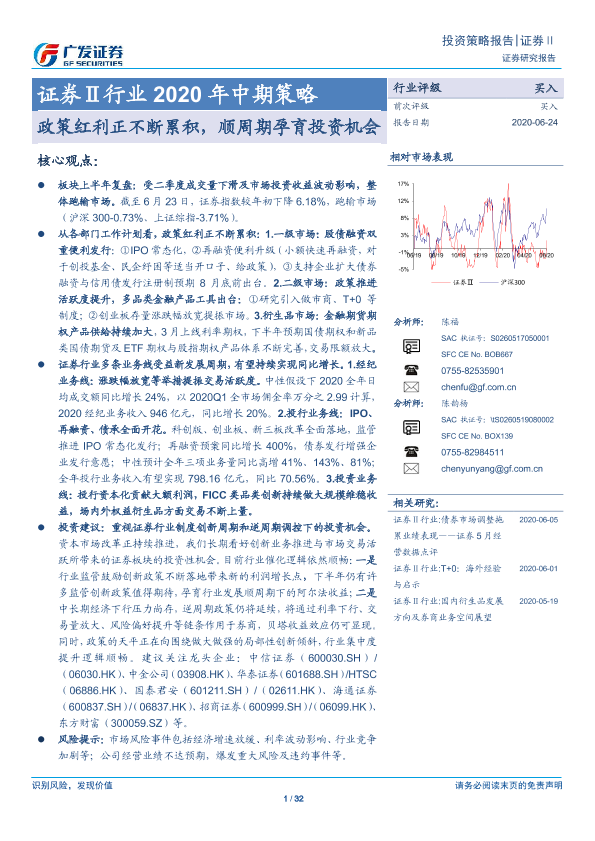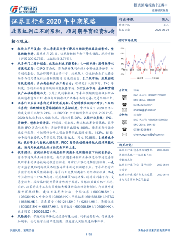 【广发证券】【20200624】证券Ⅱ行业2020年中期策略:政策红利正不断累积,顺周期孕育投资机会-32页