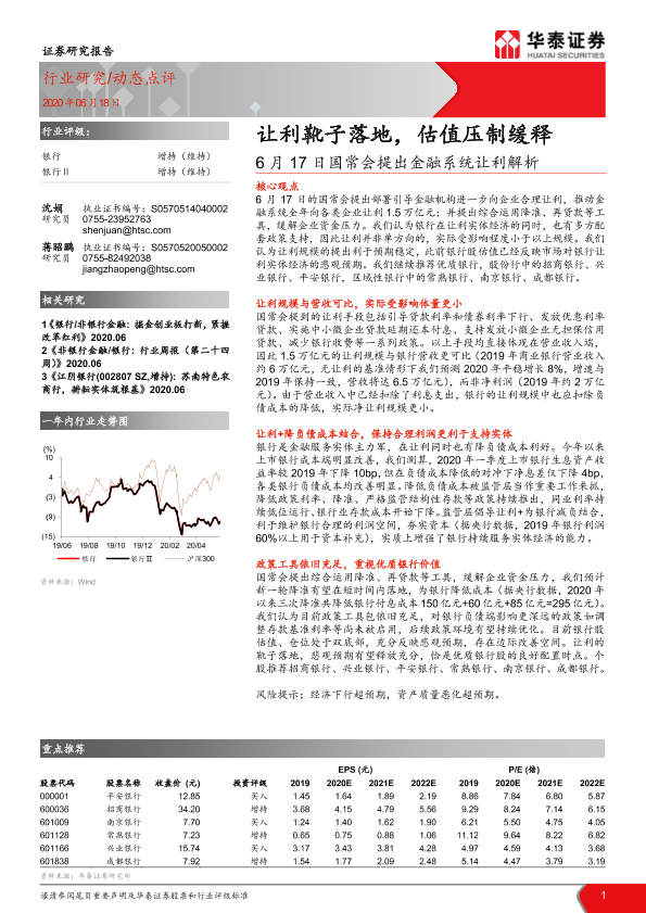 【华泰证券】【20200618】6月17日国常会提出金融系统让利解析-让利靴子落地,估值压制缓释-3页
