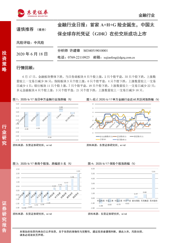 【东莞证券】【20200618】金融行业日报:首家A+H+G险企诞生,中国太保全球存托凭证(GDR)在伦交所成功上市-4页