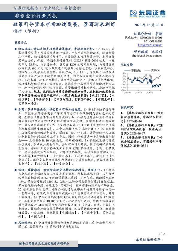 【东吴证券】【20200620】非银金融行业周报:政策引导资本市场加速发展,券商迎来利好-14页