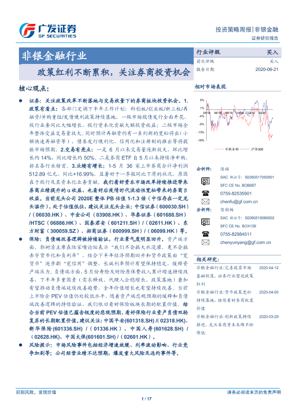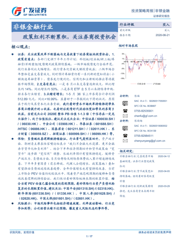 【广发证券】【20200621】非银金融行业投资策略周报:政策红利不断累积,关注券商投资机会-17页