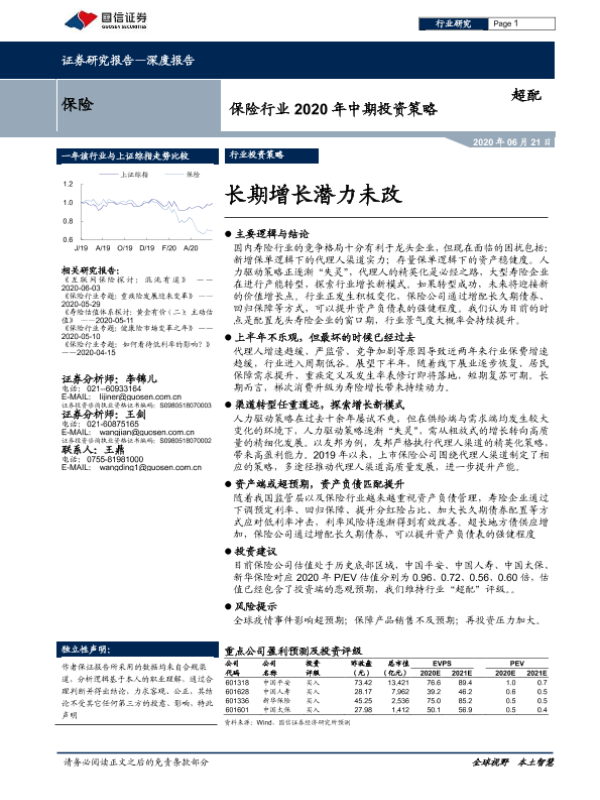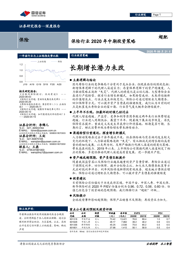 【国信证券】【20200621】保险行业2020年中期投资策略:长期增长潜力未改-19页