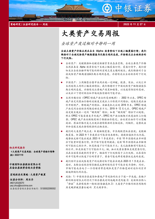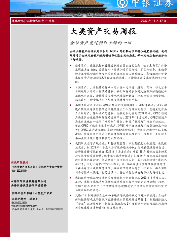 【中银证券】【20221127】大类资产交易周报:全球资产度过相对平静的一周-18页