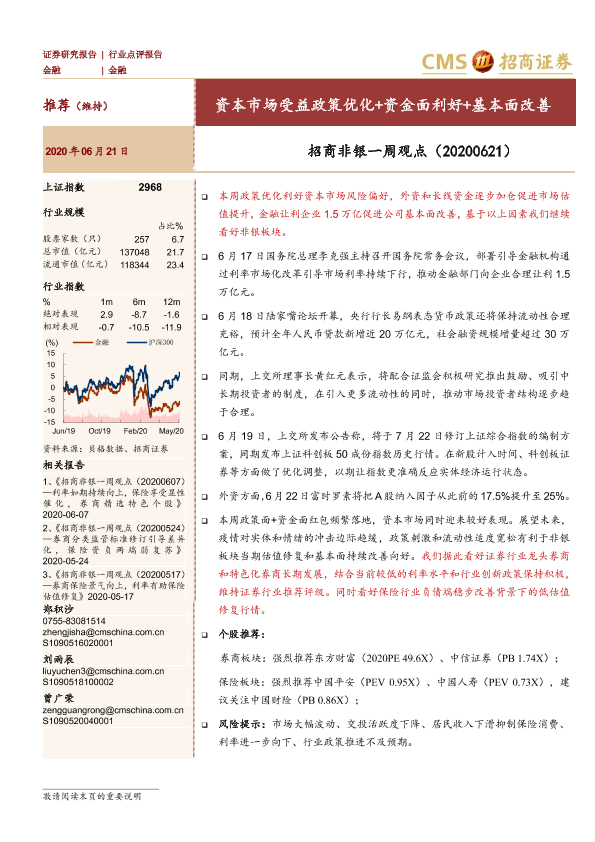 【海通证券】【20200621】招商非银一周观点:资本市场受益政策优化+资金面利好+基本面改善-3页