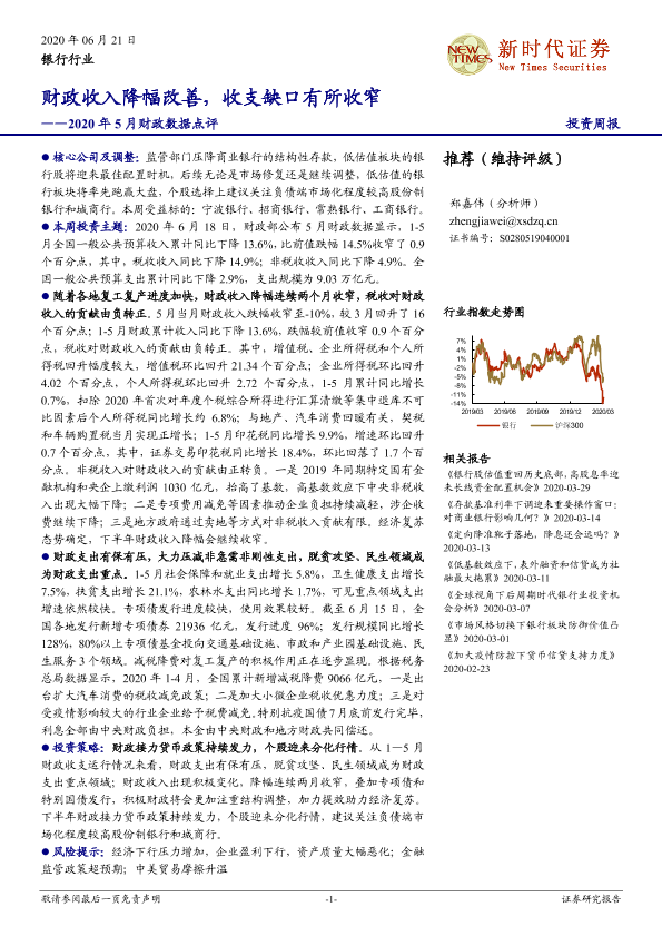 【新时代证券】【20200621】银行行业2020年5月财政数据点评:财政收入降幅改善,收支缺口有所收窄-18页