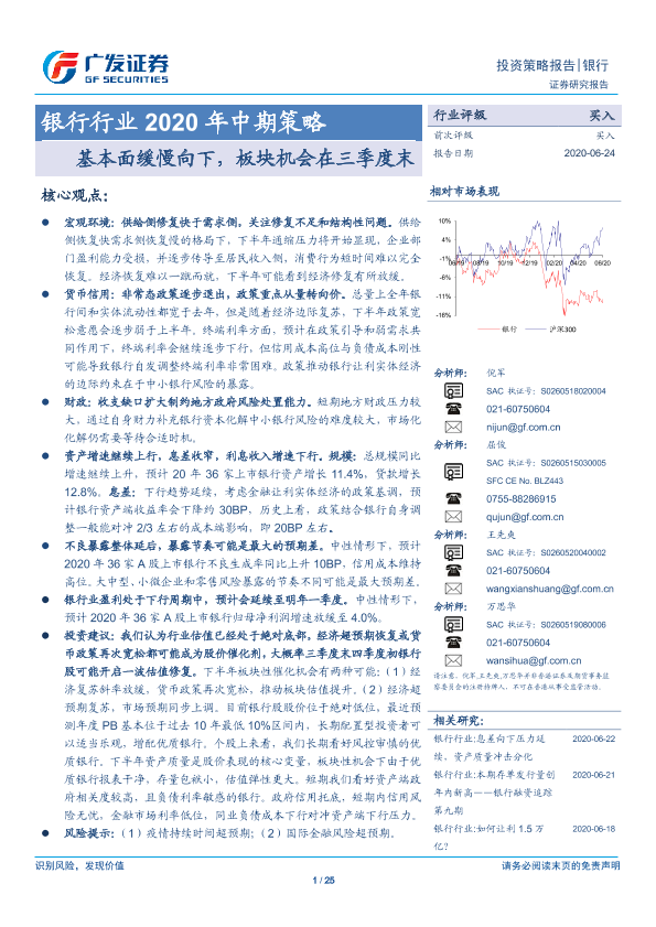 【广发证券】【20200624】银行行业2020年中期策略:基本面缓慢向下,板块机会在三季度末-25页