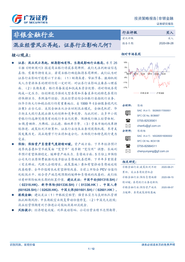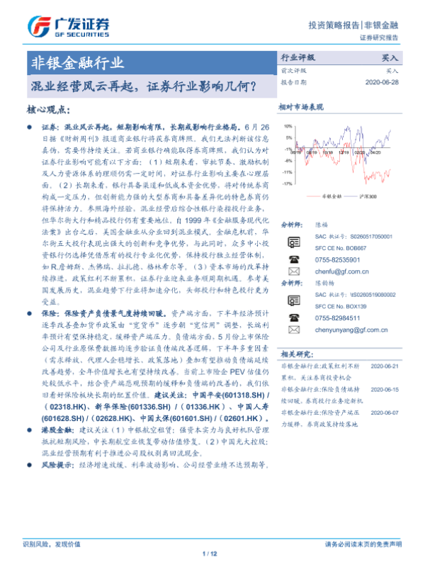 【广发证券】【20200628】非银金融行业投资策略报告:混业经营风云再起,证券行业影响几何?-12页