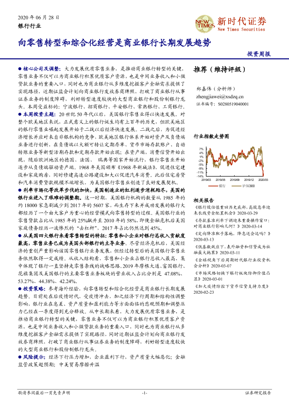 【新时代证券】【20200628】向零售转向零售转型和综合化经营是商业银行长期发展趋势-17页