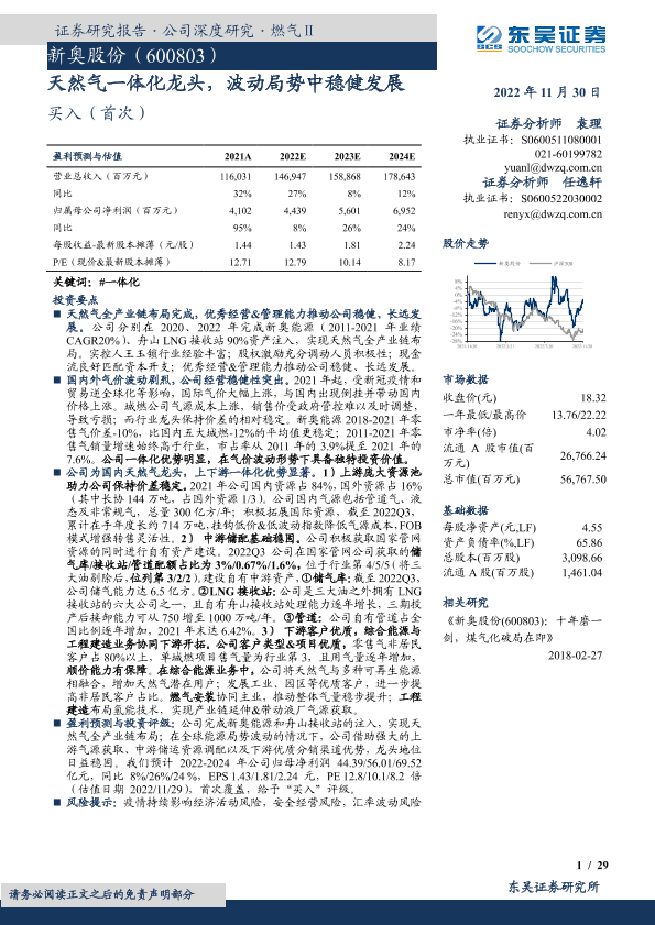 【东吴证券】【20221130】天然气一体化龙头,波动局势中稳健发展-29页