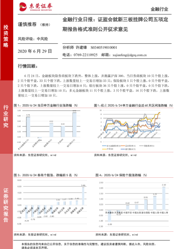 【东莞证券】【20200629】金融行业日报:证监会就新三板挂牌公司五项定期报告格式准则公开征求意见-4页