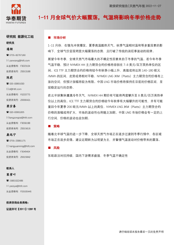 【华泰期货】【20221127】天然气年报:1_11月全球气价大幅震荡,气温将影响冬季价格走势-15页