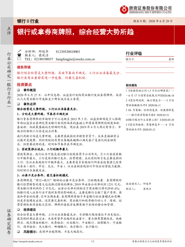 【浙商证券】【20200629】银行或拿券商牌照,综合经营大势所趋-2页