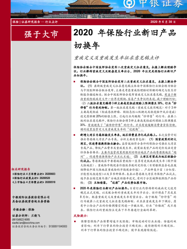 【中银证券】【20200630】2020年保险行业新旧产品切换年:重疾定义及重疾发生率征求意见稿点评-10页