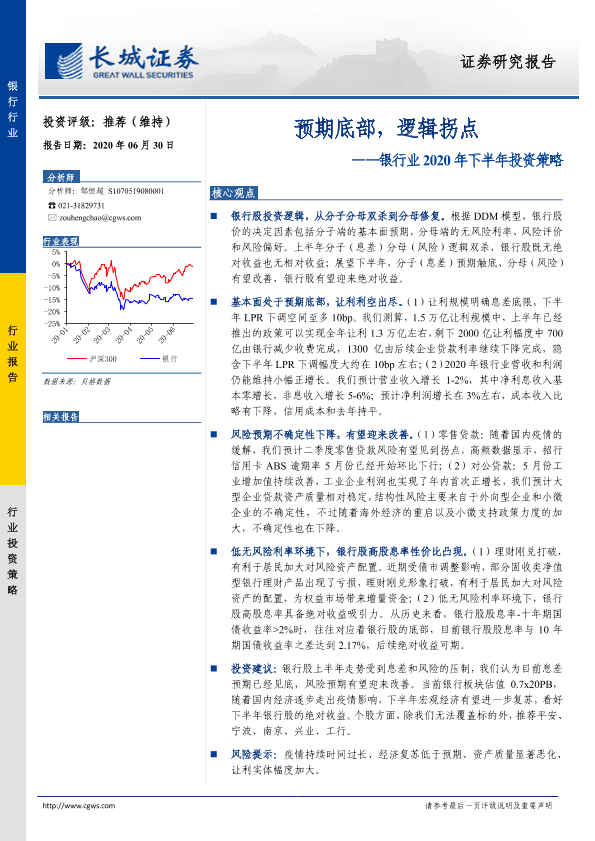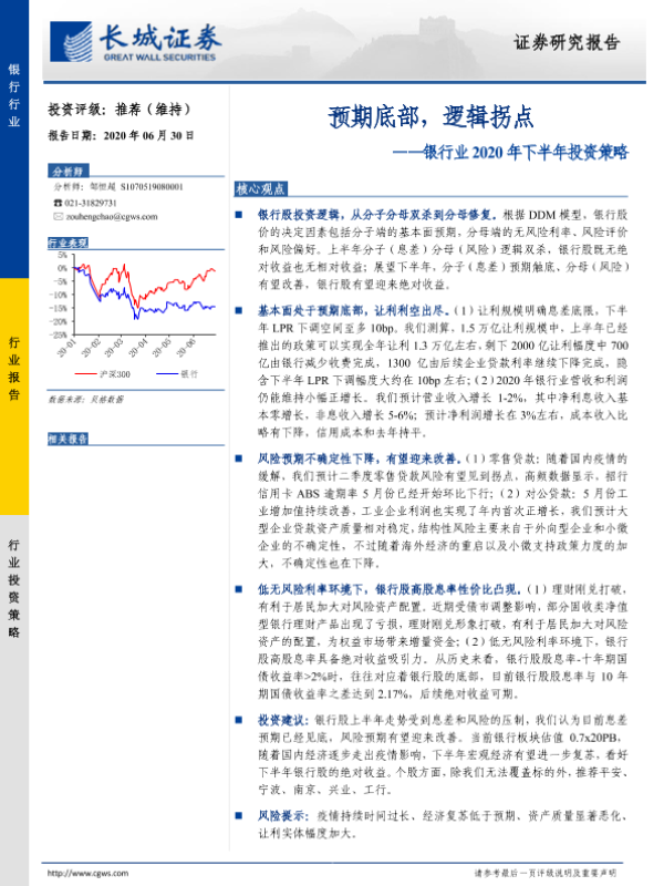 【长城证券】【20200630】银行业2020年下半年投资策略:预期底部,逻辑拐点-17页