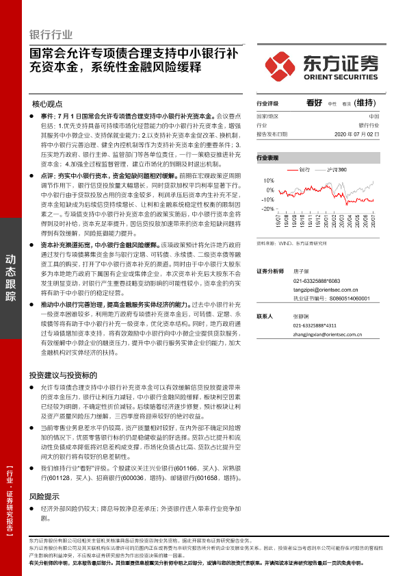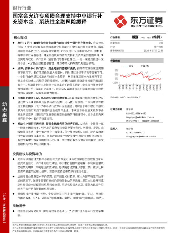 【东方证券】【20200702】国常会允许专项债合理支持中小银行补充资本金,系统性金融风险缓释-3页