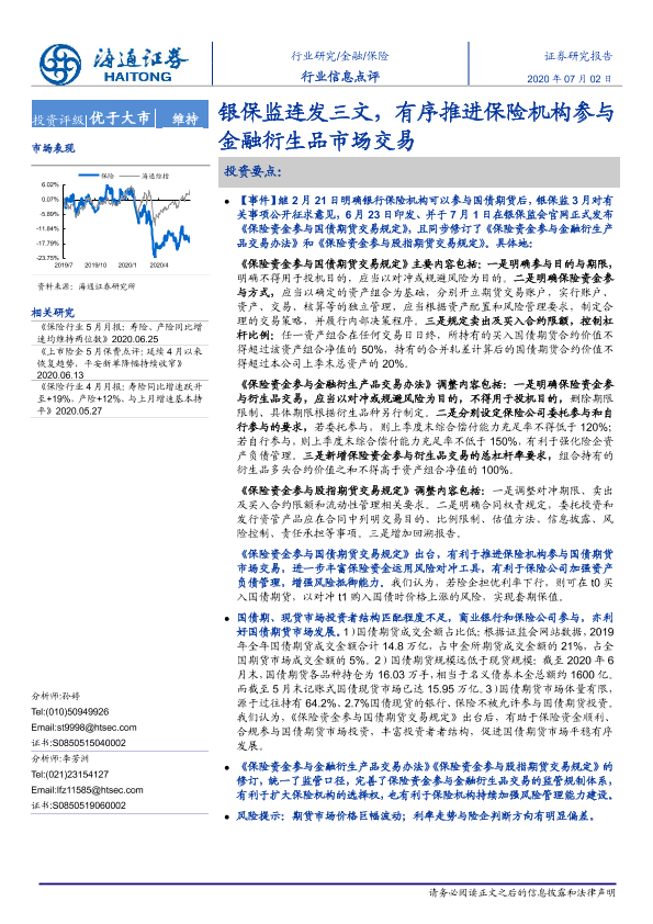 【海通证券】【20200702】保险行业信息点评:银保监连发三文,有序推进保险机构参与金融衍生品市场交易-3页