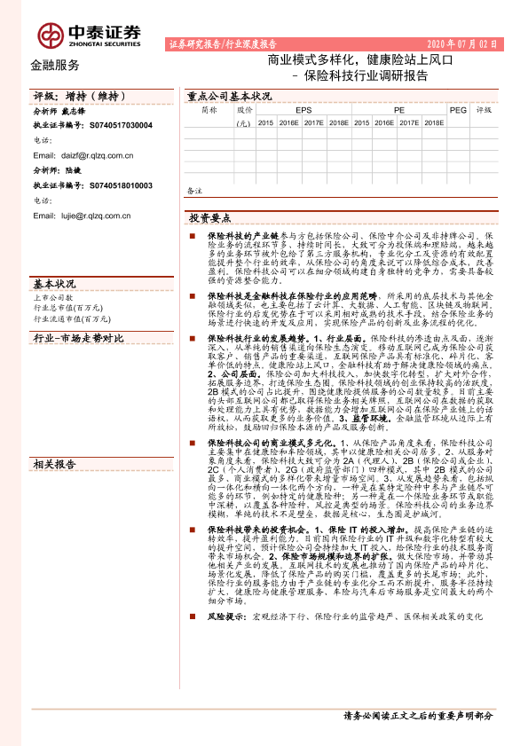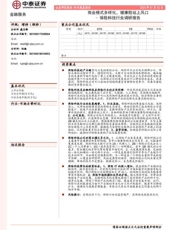【中泰证券】【20200702】保险科技行业调研报告:商业模式多样化,健康险站上风口-26页