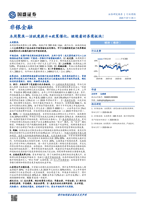 【国盛证券】【20200705】非银金融本周聚焦:活跃度提升+政策催化,继续看好券商板块!-14页