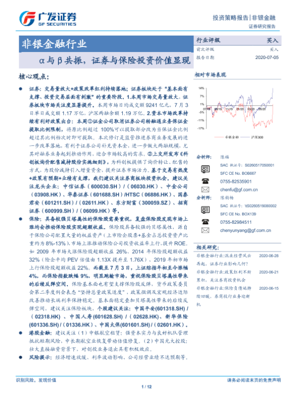 【广发证券】【20200705】非银金融行业投资策略报告:α与β共振,证券与保险投资价值显现-12页