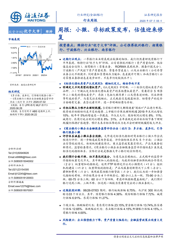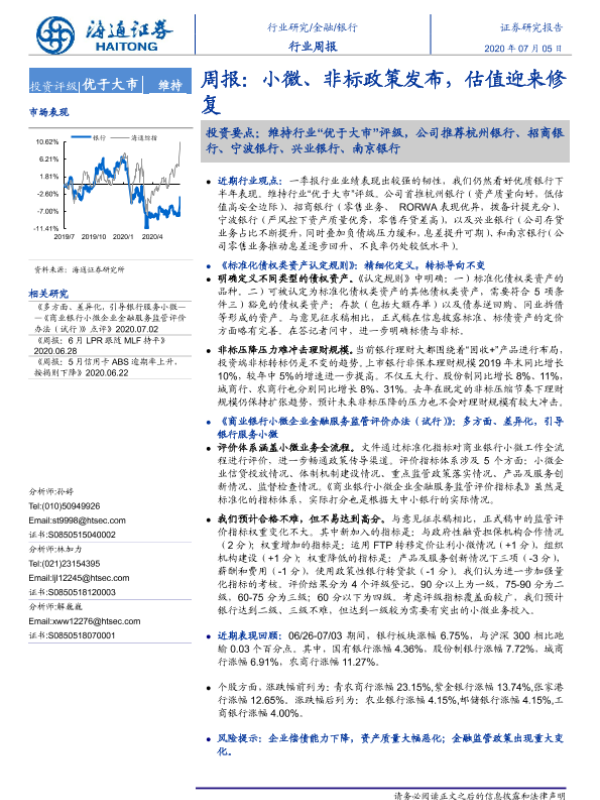 【海通证券】【20200705】银行周报:小微、非标政策发布,估值迎来修复-7页