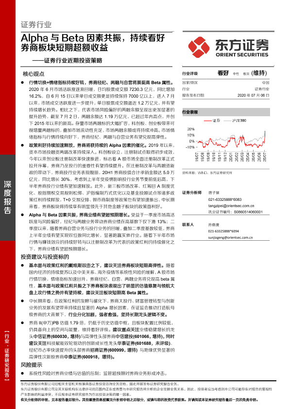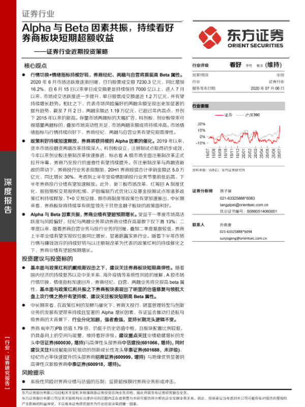 【东方证券】【20200706】证券行业近期投资策略:Alpha与Beta因素共振,持续看好券商板块短期超额收益-19页