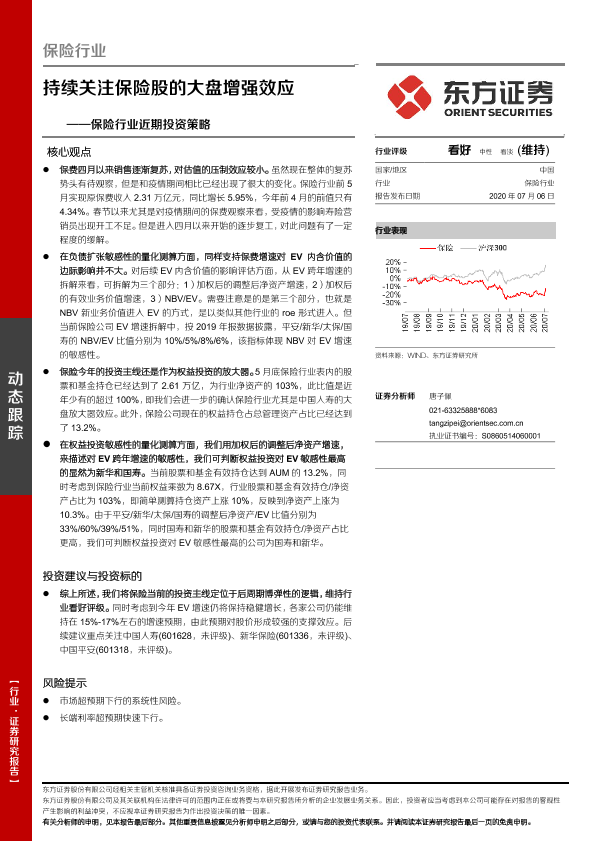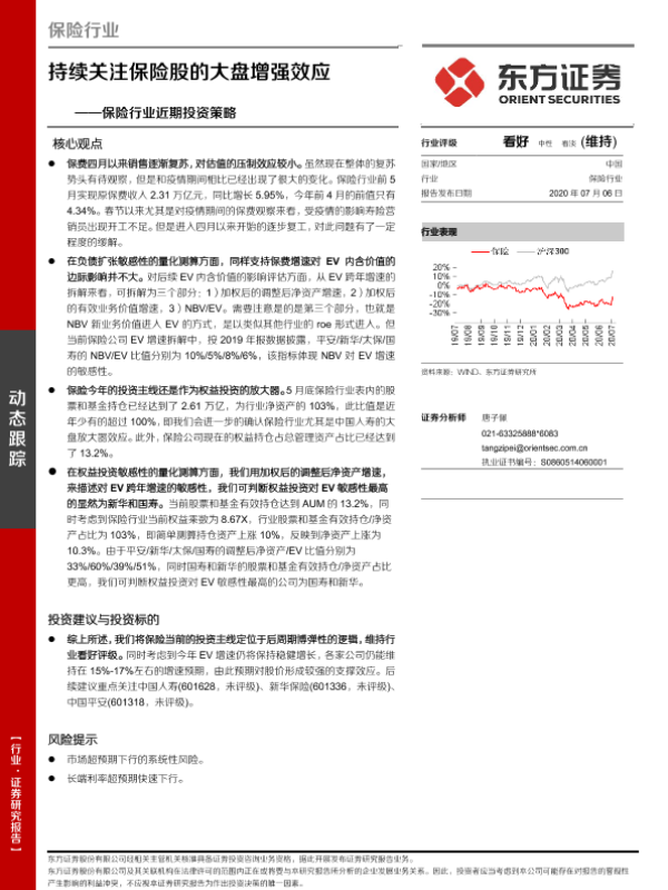 【东方证券】【20200706】保险行业近期投资策略:持续关注保险股的大盘增强效应-9页