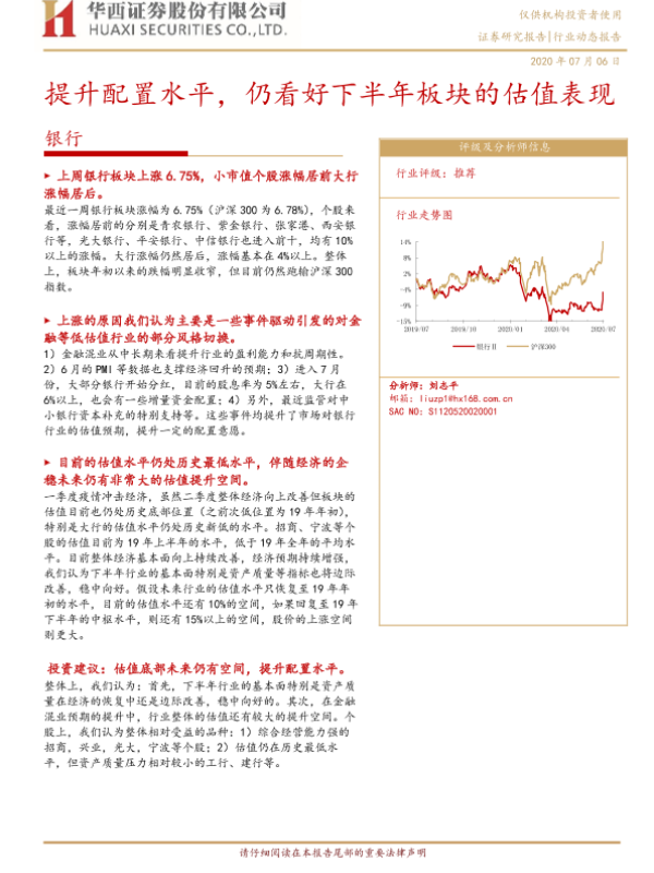 【华西证券】【20200706】提升配置水平,仍看好下半年板块的估值表现-4页