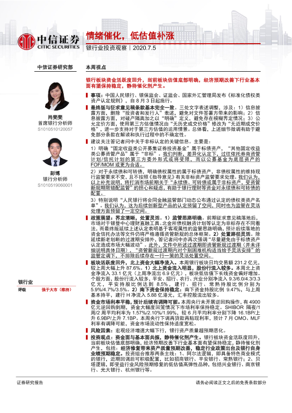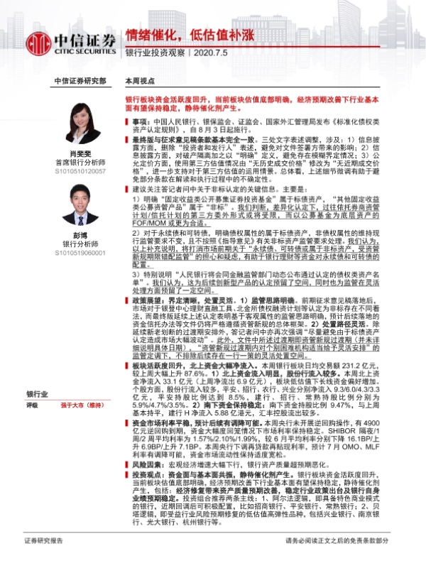 【中信证券】【20200705】银行业投资观察:情绪催化,低估值补涨-11页