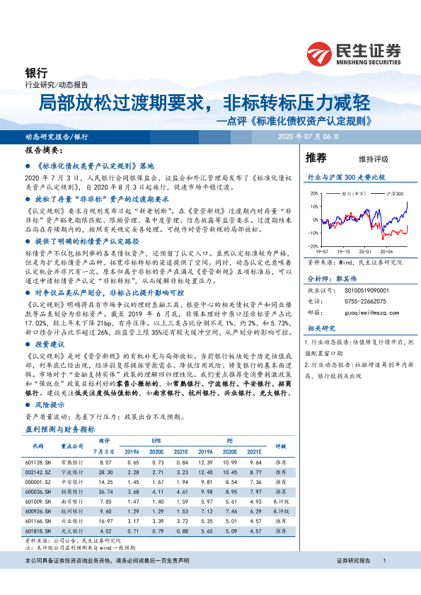 【民生证券】【20200706】银行点评《标准化债权资产认定规则》:局部放松过渡期要求,非标转标压力减轻-9页