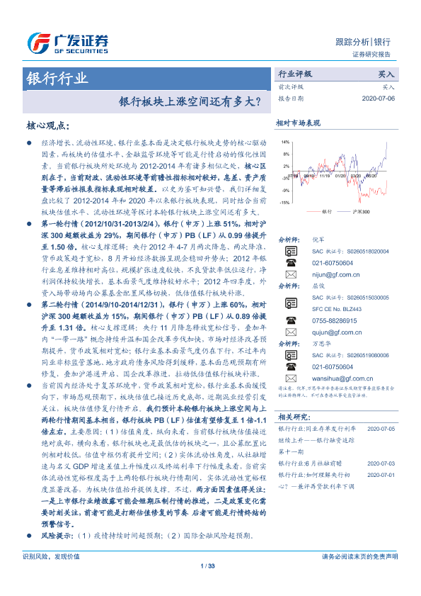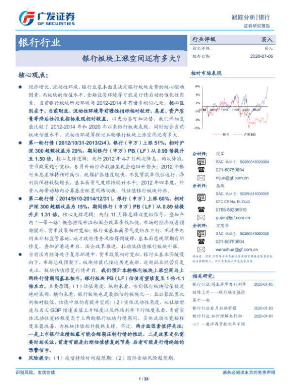 【广发证券】【20200706】银行板块上涨空间还有多大?-33页