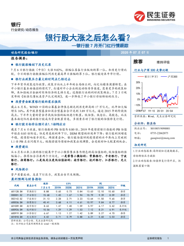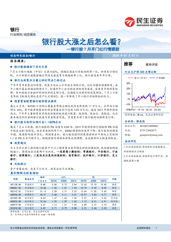 【民生证券】【20200707】银行股7月开门红行情跟踪:银行股大涨之后怎么看?-12页