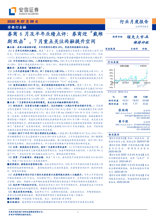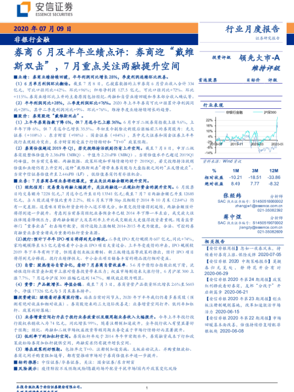 【安信证券】【20200709】非银行金融:券商6月及半年业绩点评-8页