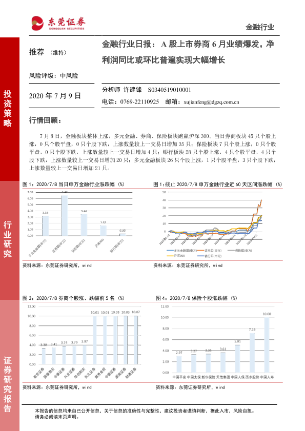 【东莞证券】【20200709】A股上市券商6月业绩爆发,净利润同比或环比普遍实现大幅增长-4页
