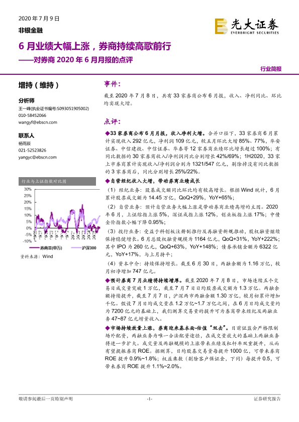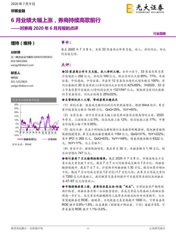 【光大证券】【20200709】对券商2020年6月月报的点评:6月业绩大幅上涨,券商持续高歌前行-5页