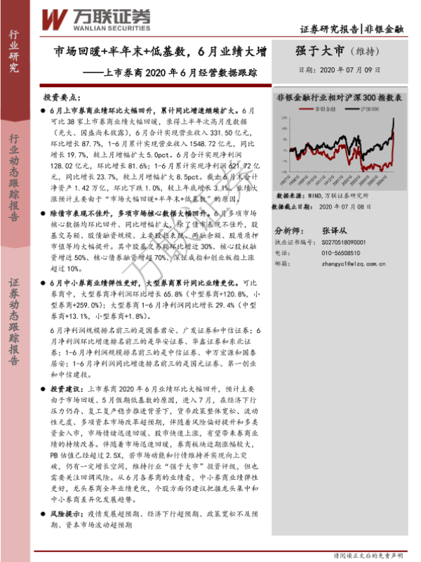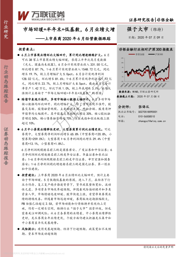 【万联证券】【20200709】上市券商2020年6月经营数据跟踪-12页