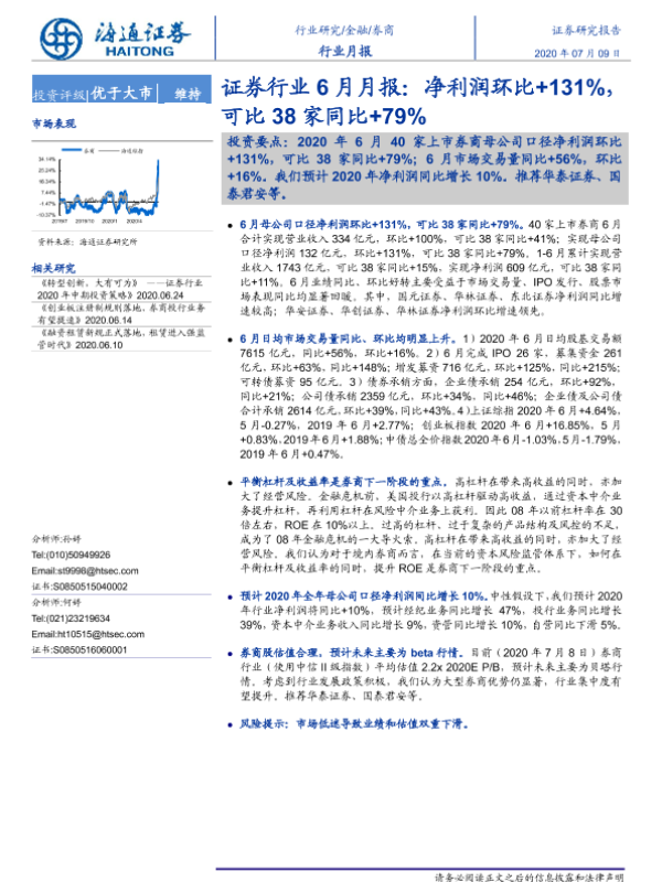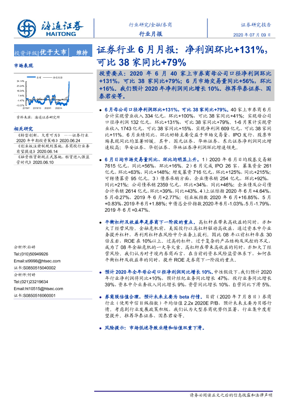 【海通证券】【20200709】证券行业6月月报:净利润环比+131%,可比38家同比+79%-7页