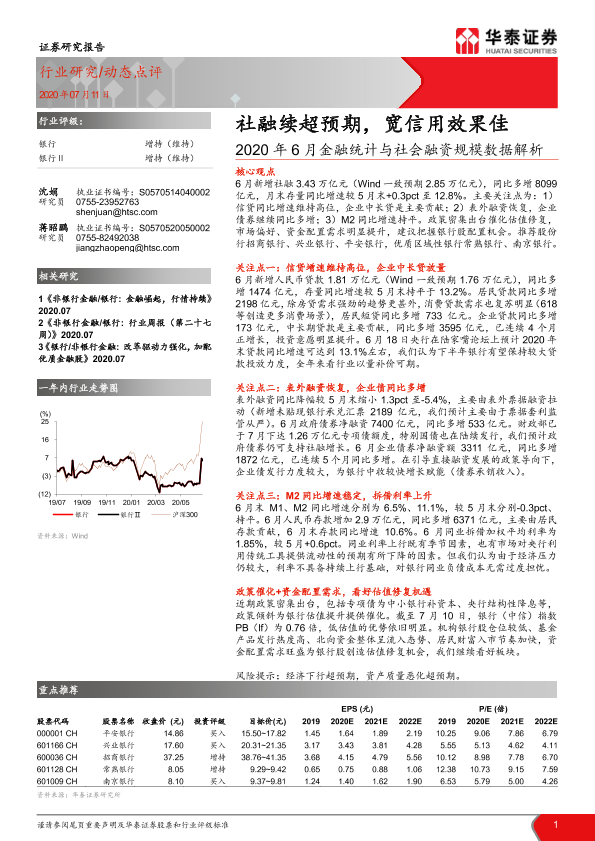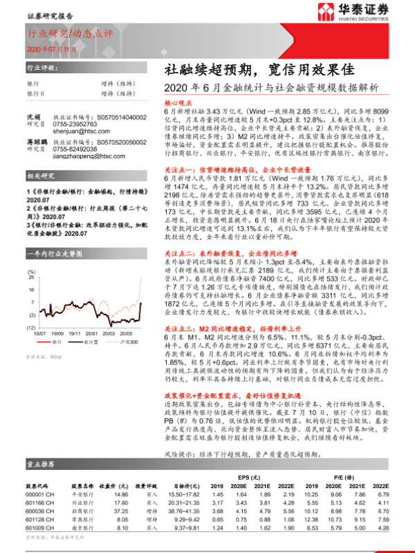 【华泰证券】【20200711】2020年6月金融统计与社会融资规模数据解析:社融续超预期,宽信用效果佳-7页