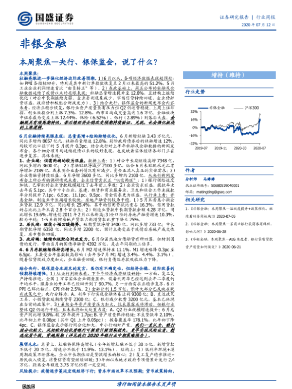 【国盛证券】【20200712】非银金融本周聚焦-央行、银保监会,说了什么?-19页