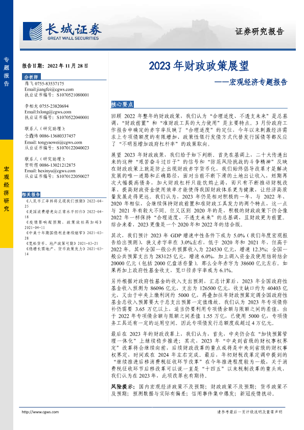 【长城证券】【20221128】宏观经济专题报告:2023年财政政策展望-33页